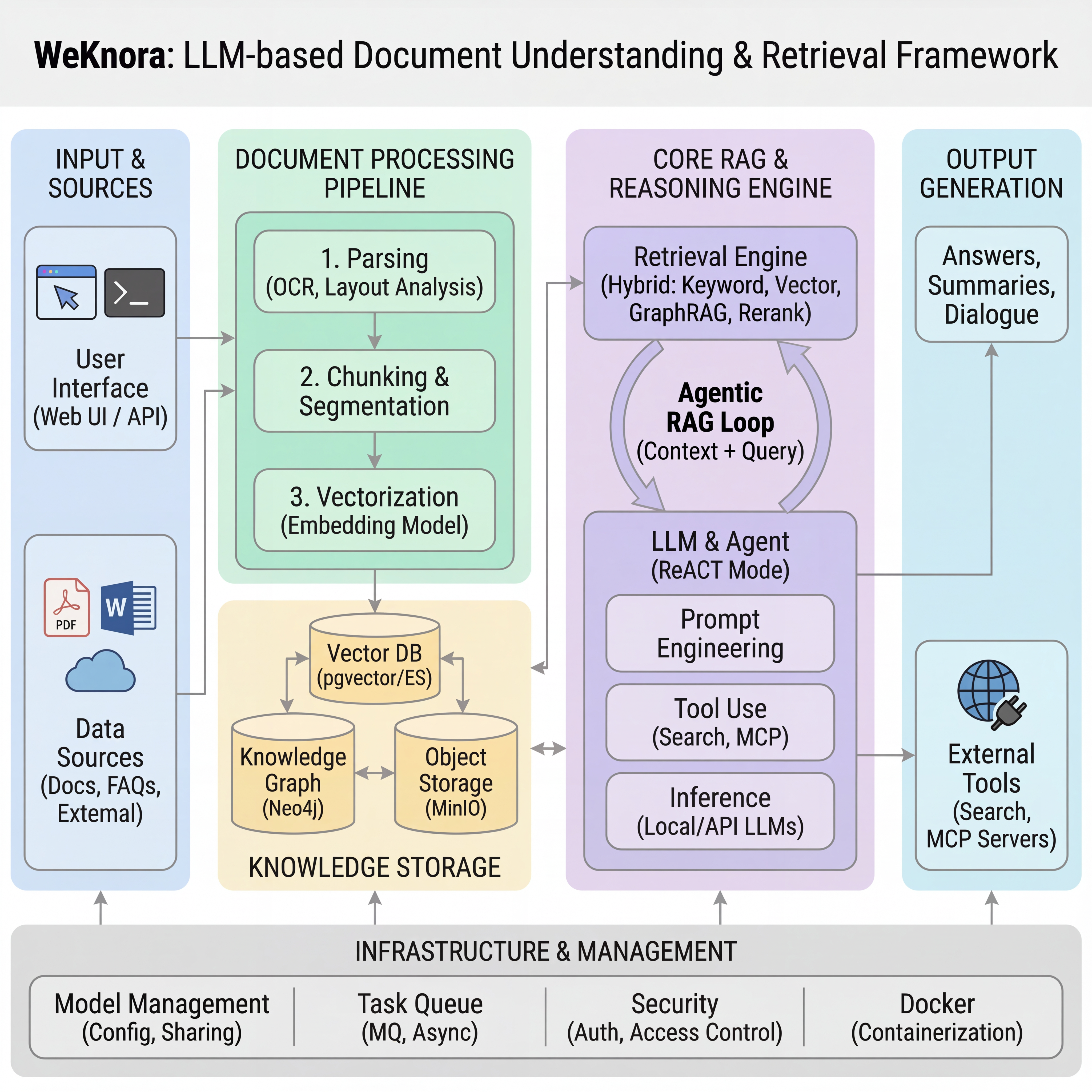 可以把它用在很多常见的企业场景,比如内部知识库 / 文档问答:将产品手册、规范文档、培训资料等变成可查询的智能语义库。 科研资料分析:对学术论文、多格式报告库做语义抽取与智能问答。 客服与支持自动化:自动理解用户问题,结合文档数据生成专业回答。 整个框架采用模块化架构,融合多模态预处理、语义向量索引、智能召回与大模型生成推理,构建起高效、可控的文档问答流程。